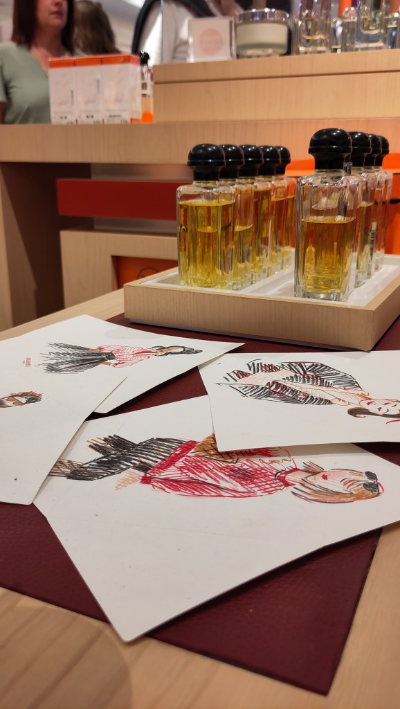 Pour des évènements du calendrier ou pour la sortie d’un nouveau parfum j’interviens en point de vente Hermès.